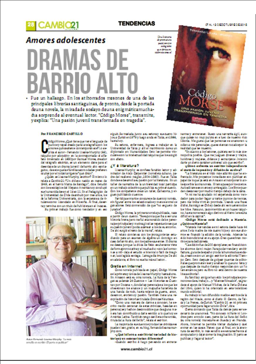 Entrevista en Cambio21Amores adolescentes / DRAMAS DE BARRIO ALTO